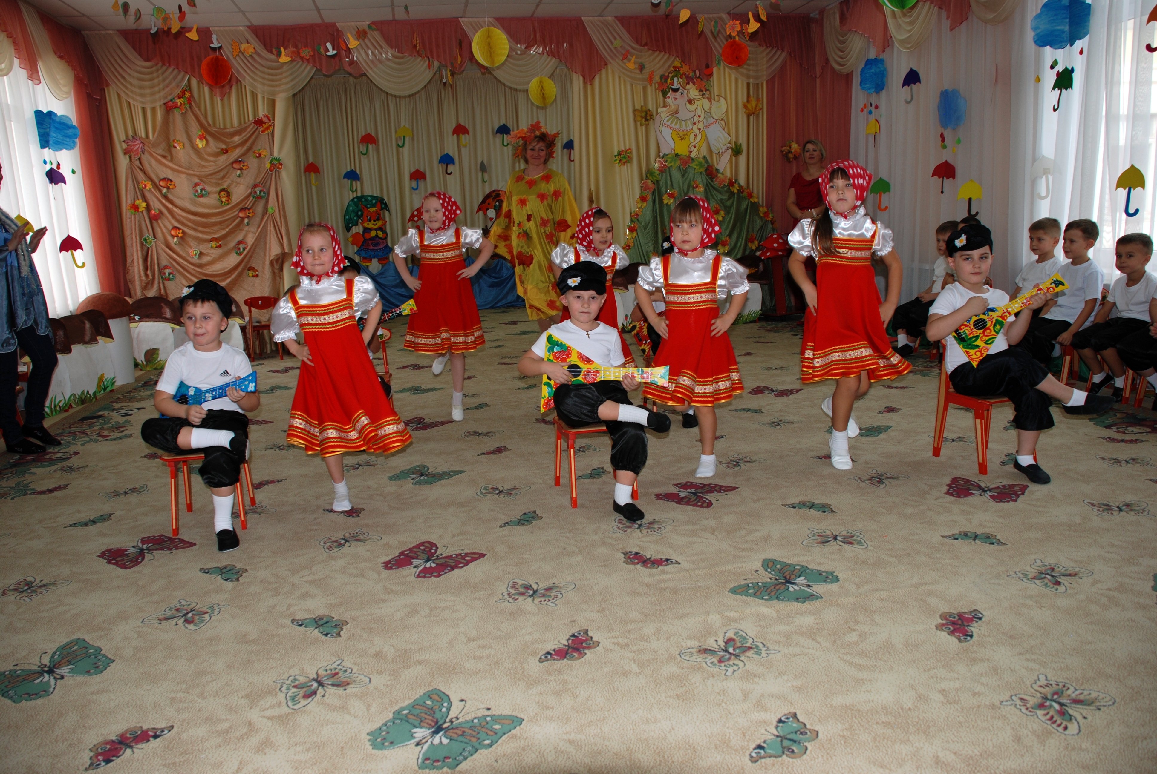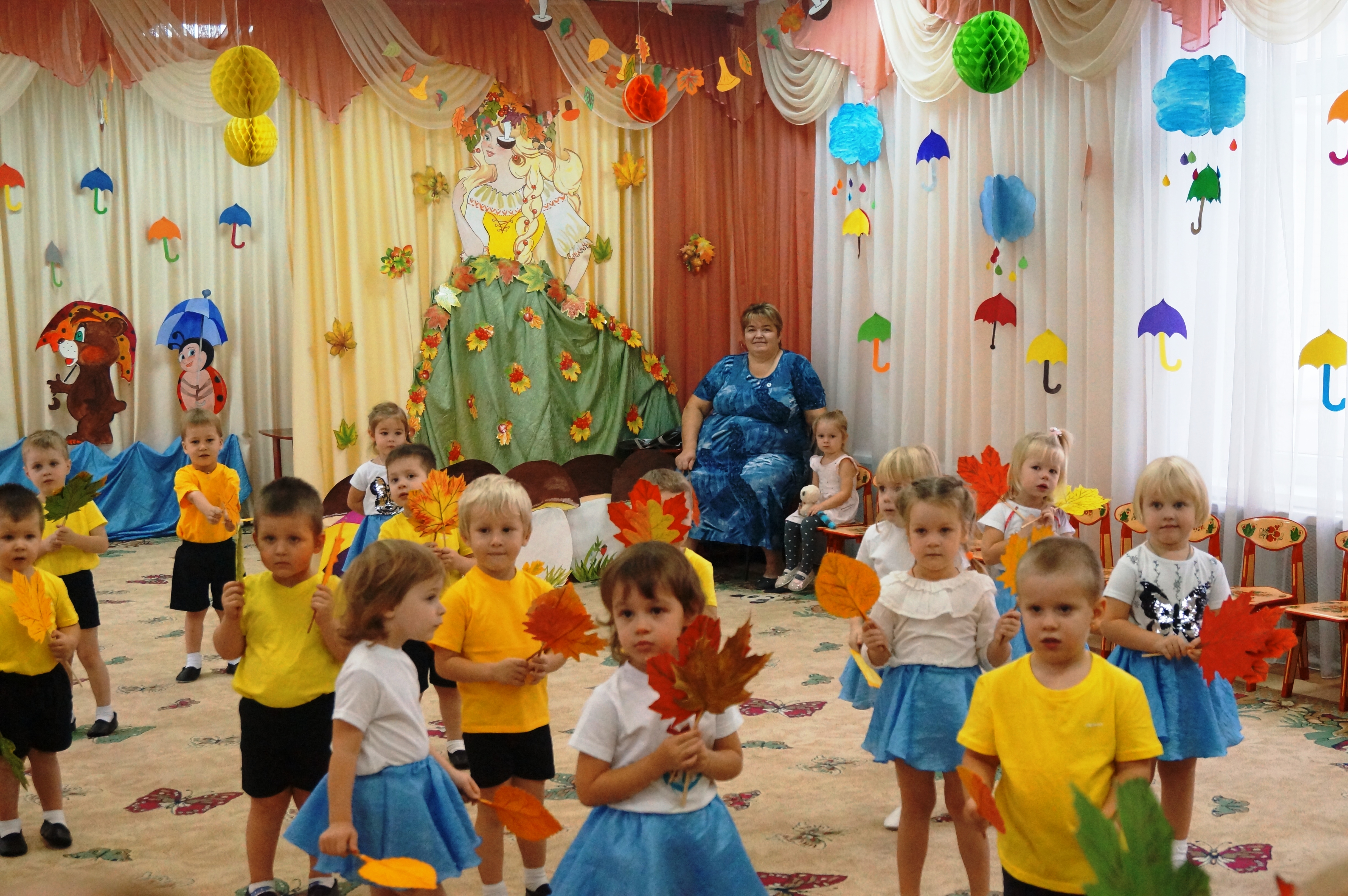 Праздник осени, это, пожалуй, всегда самый красочный и яркий праздник, за окном слякоть и холод, а 1 ноября на празднике, который проходил в Группе № 4 «Гномики» дошкольного корпуса № 8 царила необычайно теплая и доброжелательная атмосфера. Все детишки принимали участие в празднике: выразительно читали стихи, задорно танцевали, исполняли песни, участвовали в веселых играх. В гости к детишкам пришла красавица Осень, добрый ёжик, были пчелки и бельчата, в разгар праздника появилась баба Яга. Хоть и говорят, что осень унылая пора, но дети были в восторге, завершающим моментом стала корзина с фруктами, которую потом все дружно начали кушать. Конечно, стоит отметить, что праздник не состоялся бы без наших воспитателей Тиняевой Ольге Петровне и Агафоновой Елене Николаевне, которые прекрасно проводят данные мероприятие, умеют не только грамотно раскрыть ресурс артистизма детей, но и ненавязчиво мотивировать и настроить на нужную волну всех детишек. Отдельные слова благодарности хочется выразить музыкальному руководителю Михайловой Элеоноре Валентиновне, которая приложила усилия и подарила особую неповторимую атмосферу живого аккомпанемента музыкальных номеров. Очень радует, что наши воспитатели и музыкальный руководитель не только стараются каждого воспитанника привлечь к общему действию, но и сами всегда активно участвуют в ходе мероприятия – легки на подъем, инициативны и позитивно настроены, способны увлечь и повести за собой таких разных наших детишек. И я, как зритель, как мама воспитанника группы, выражаю огромную благодарность Всем тем, кто участвовал в организации и проведении этого замечательного праздника, который подарил отличное настроение и огромный заряд позитива.